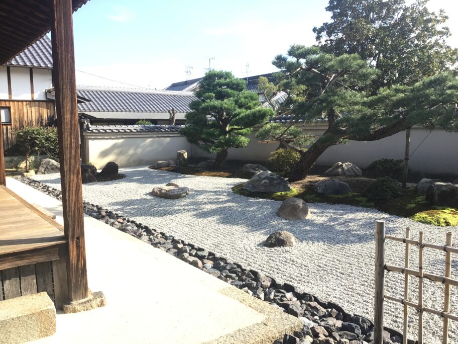 『紙こより画』体験をした「方丈」の向かいにある枯山水『亀集庭』の写真です。