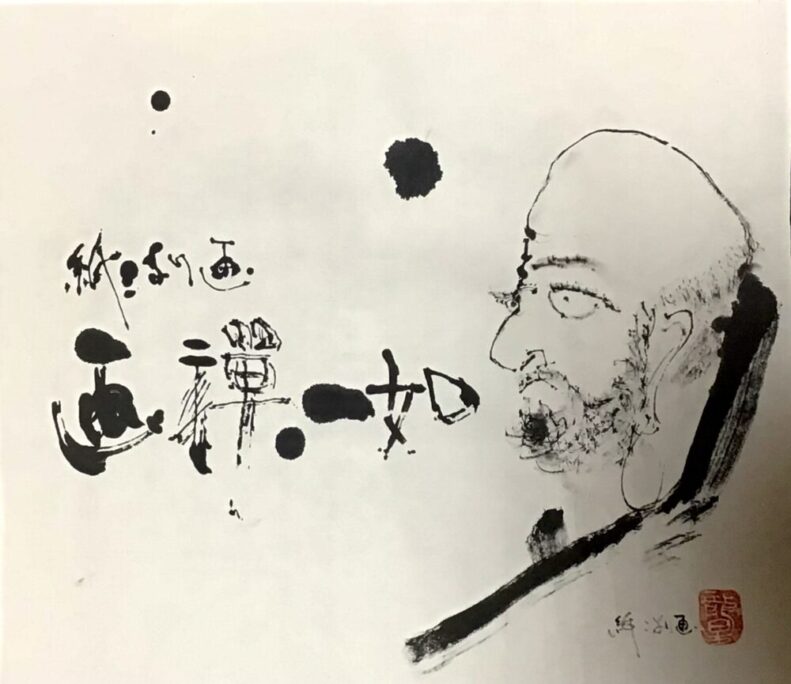 仙崖義梵の禅画「人が佛になるならハ」です。これを元に私がイメージして描いたものが、右の写真です。