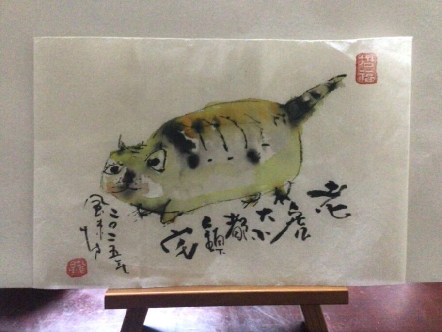 最初の頃は、丁寧に、慎重に書かれていたので、絵も文字も硬くて面白味が感じられなかったのですが、上手く書こうとする「欲」を捨てて、「己を殺して、こよりに委ねる」ことにより、意外な線が生まれてくる事を、体験されて、ここまで書くことが出来ました。