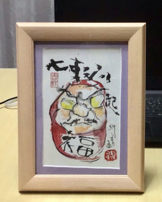 買って頂いた作品は、「七転八起」の達磨絵です。この絵もユニークな作品です。
